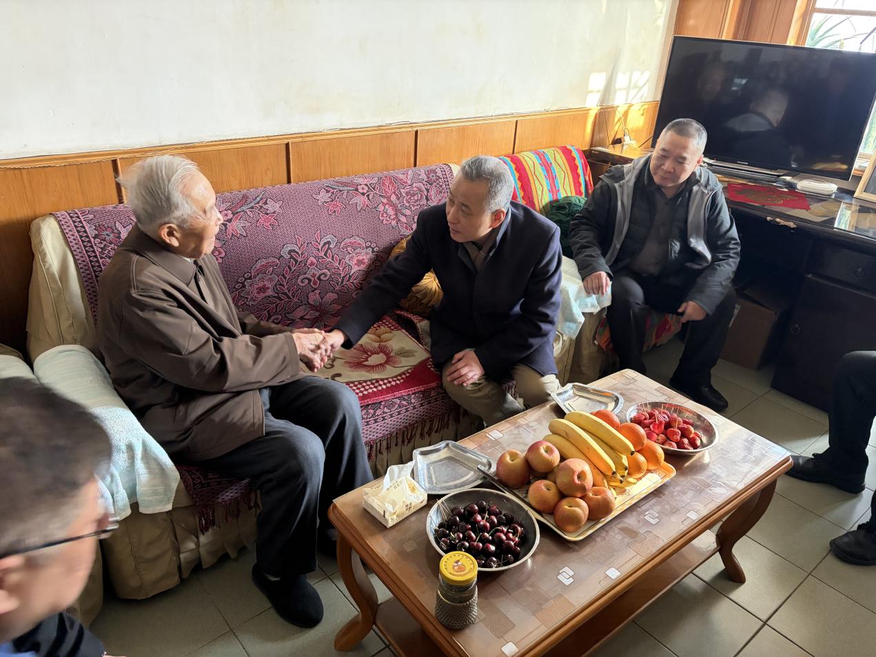 张庆伍一行到全国劳模刘增林家,亲切问候了身体情况、生活情况,并祝愿他节日愉快,健康长寿。刘增林表示非常感谢组织上的关怀与问候。张庆伍对王宣伟同志在驻村工作方面给予了高度评价。王宣伟表示感谢市社党委、集团党委的关心和鼓励,一定履职尽责做好工作。